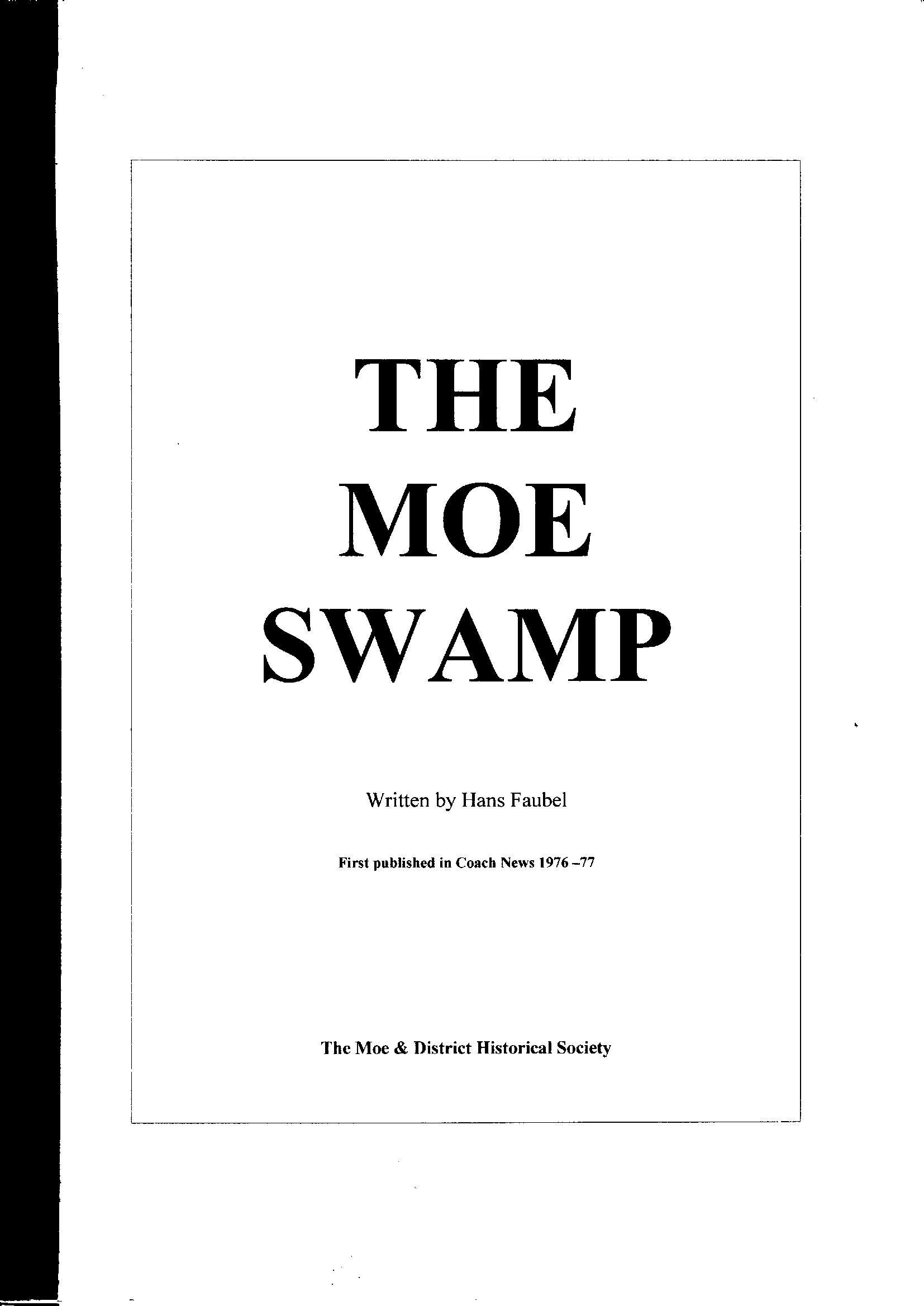![]() ![]() | “The Moe Swamp” – a 28 page history of the draining of the swamp and conversion to farming land | Hans Faubel | $5.00 or $10.00 posted |